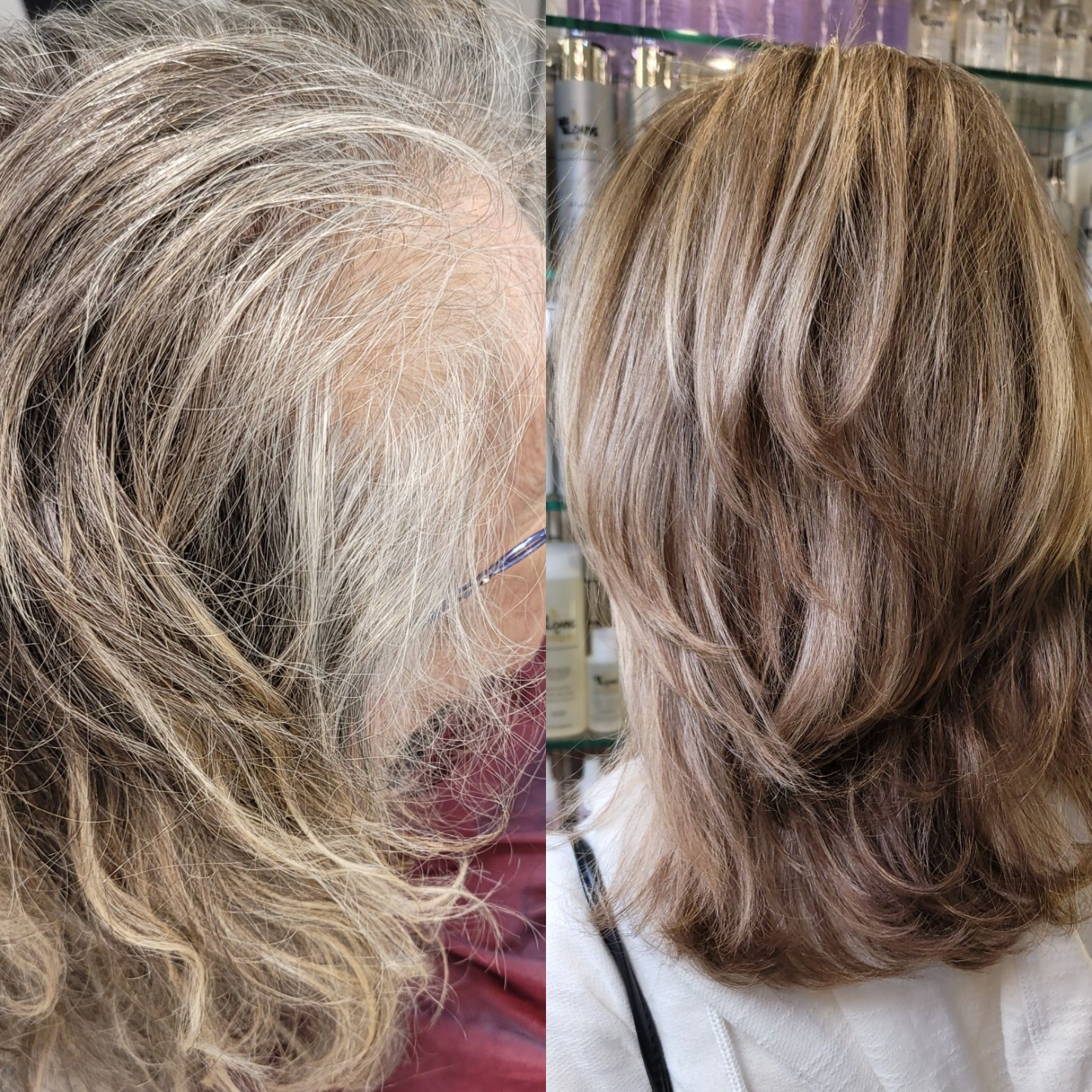 "We are Balayage Certified. Hair painting is when you want a more grown out, diffused lighter look. It can be accomplished in the same amount of time as a typical foil highlight."